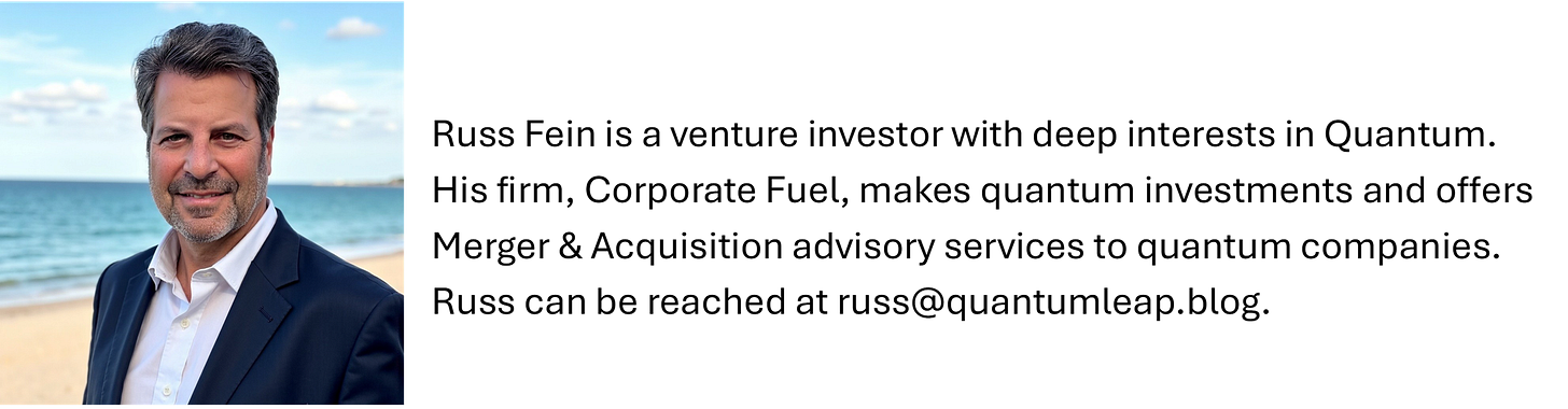 Disclosure: The author is a venture investor with investment interests in quantum and may have an interest in companies discussed in this post. The views expressed herein are solely the views of the author and are not necessarily the views of Corporate Fuel Partners or any of its affiliates or any companies it has investment interests in. Views are not intended to provide and should not be relied upon for investment advice.
